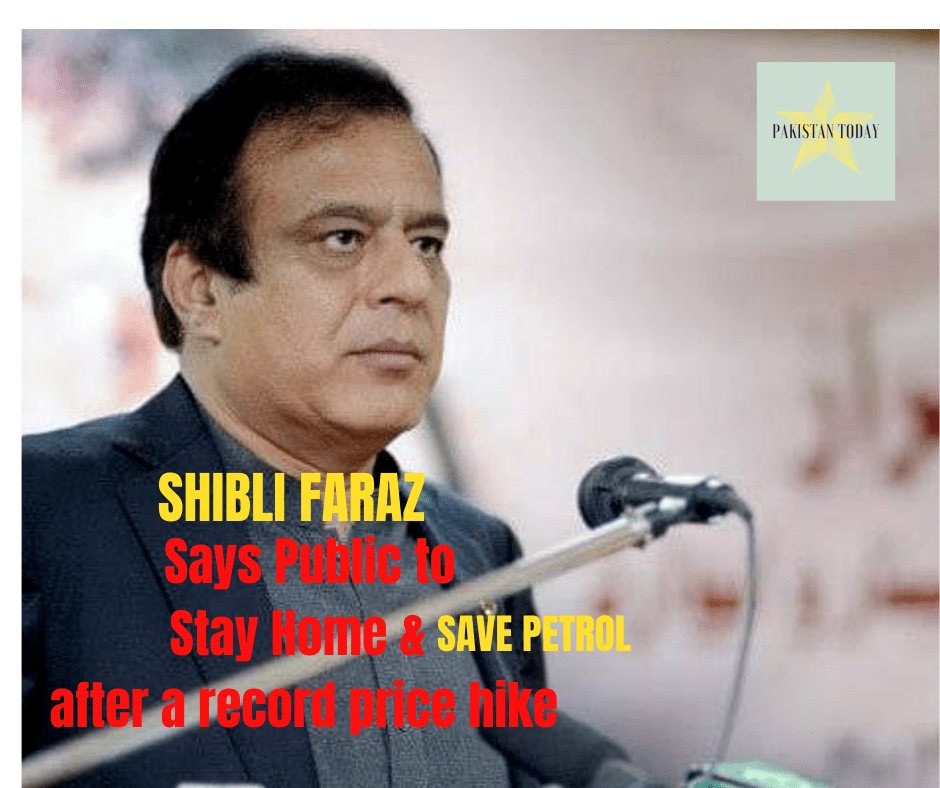Reacting to the increase in PoL prices, Federal Minister for Science and Technology Shibli Faraz has advised the masses to use ‘less fuel.’
